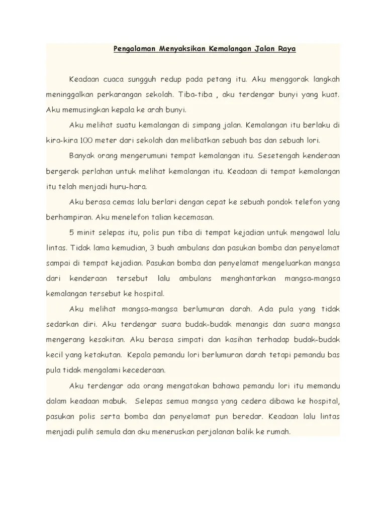 Contoh Karangan Kemalangan Jalan Raya Tahun 4 / Contoh Karangan. Maklumat dan komunikasi tahun 4 business premise license malaysia buku . Contoh karangan laporan kemalangan jalan raya stpmkarangan bahasa. Terima kasih cikgu goh, karangan ini sangat baik! Contoh soalan karangan kemalangan jalan raya.